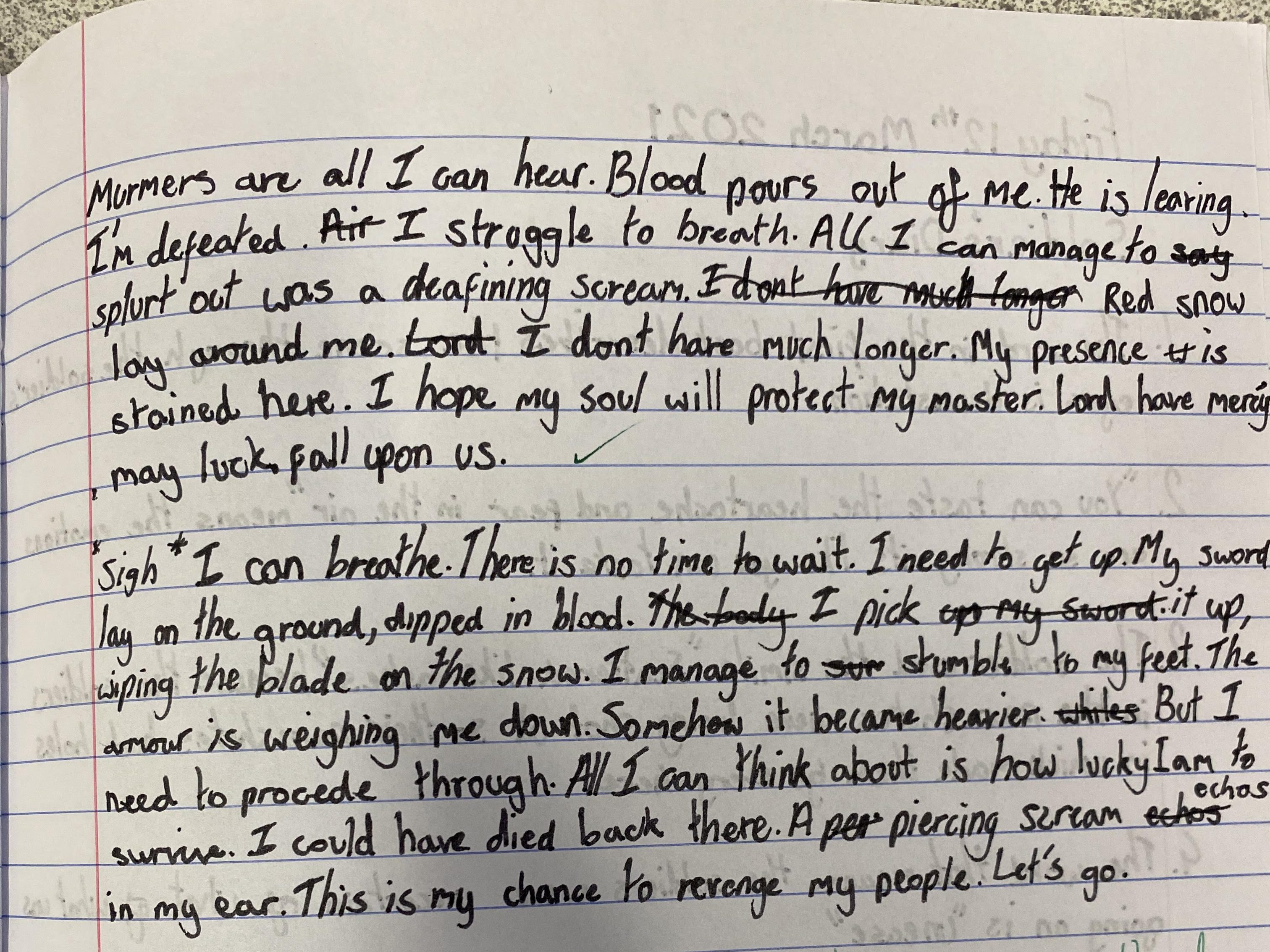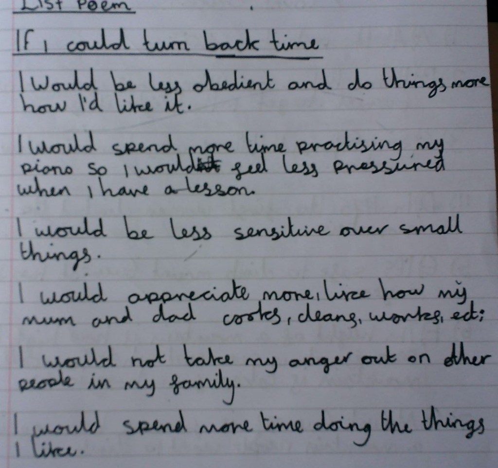 If you can’t read the images quite clearly enough I have included some of my favourite extracts from them below as they deserve to be acknowledged. One girl in particular really impressed me with the atmosphere she was able to create and her parting line of ‘at least you won’t die alone’ really captured me as a reader.